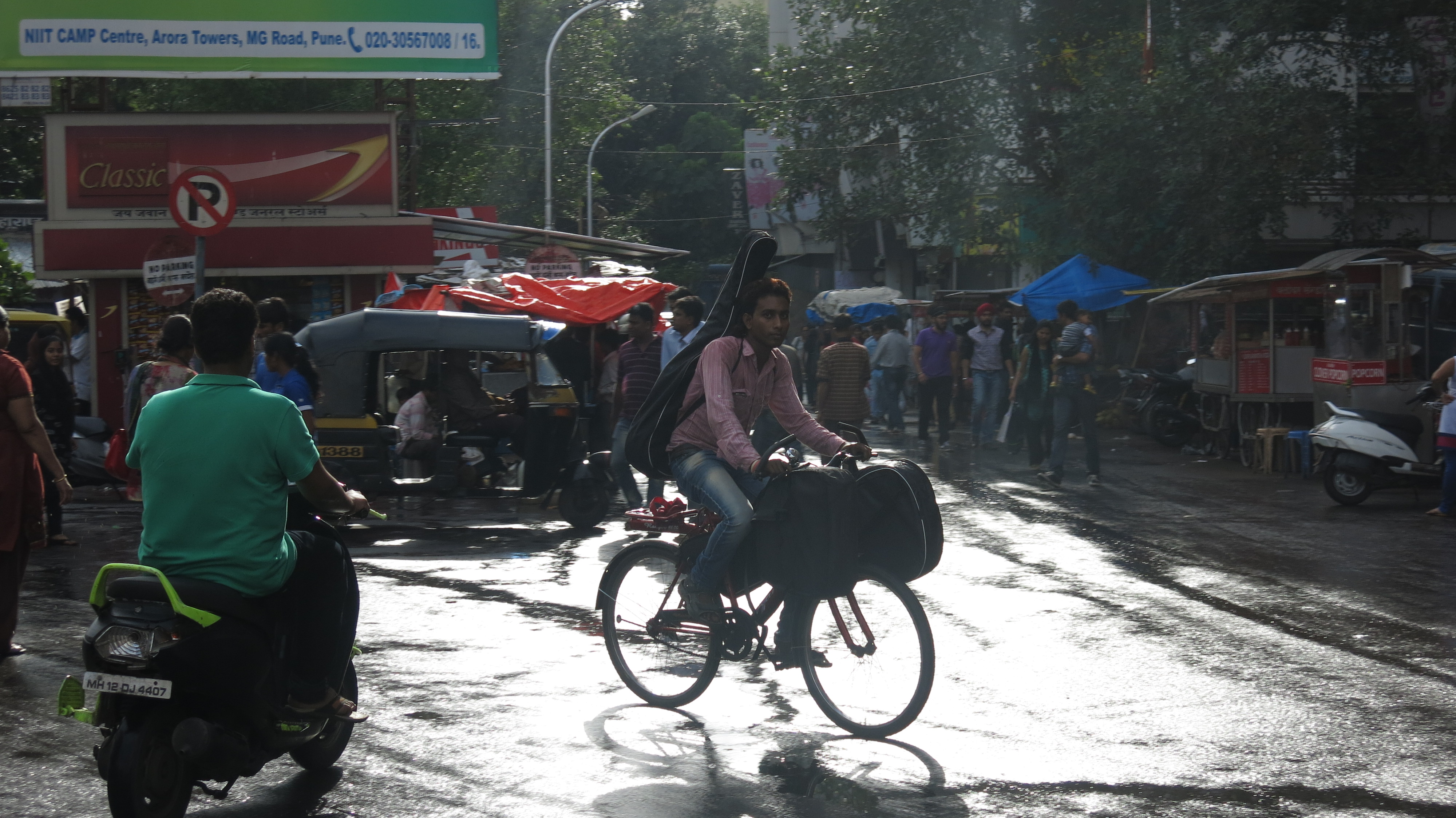 For some strange reason I thought the monsoon might discourage people from getting on the motor bikes or at least make it a little miserable. But not in Pune!!!! I keep hearing praise for the sensation of riding through the rain and the smiles of glee that accompany these statements. The freshness and the feel of drops splashing on your body has always been something that I have liked while riding my bicycle but I though this sentiment was only reserved for the most quirky of us. But in Pune, it seems to be mainstream.